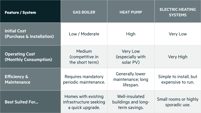 In the short term, a gas boiler often remains a financially competitive option, especially if the system is well maintained and properly managed.