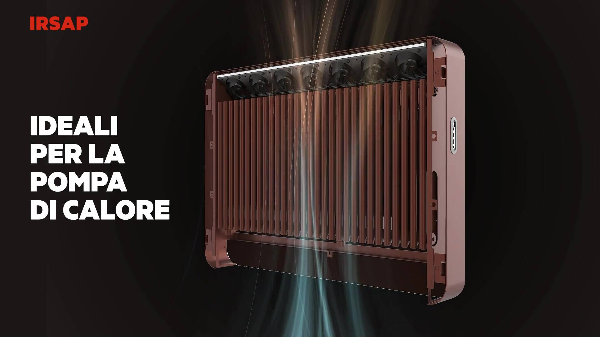 La sezione radiante unita alla sezione ventilata permette di raggiungere la massima efficienza energetica garantendo alte prestazioni in un impianto alimentato con generatori di nuova concezione, caldaie e pompe di calore. La ricerca tecnologica basata sulle ultime innovazioni sviluppate nel campo del riscaldamento ha permesso di raggiungere performance elevate garantendo il massimo comfort acustico.